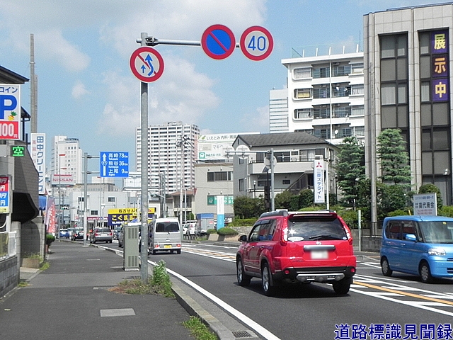 | ■他の管理者の標識 | (共架金具で設けるのとは別に)別の標識管理者が設置した標識柱に添加する方法。(写真は東京都の警視庁が設置した標識柱に東京国道事務所が標識板を設置している) |