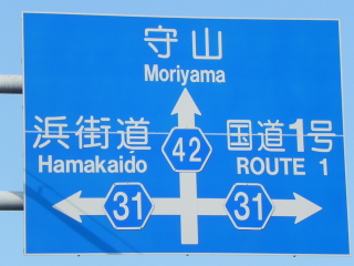 | ├3代目案内標識(ローマ字無)の現存密度 | 低い | 全国的に見て撤去・交換が進んでいる方で、市道に降格した旧道以外では見ない |