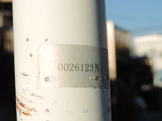 ![]() 平成8年頃以降に新設される標識には、標識柱にステッカーが貼られるようになりました。「設置年度+滋賀県公安委員会」という様式のステッカーです。 ![]() また、最近になって管理上の番号を示したシールも貼られています。これは新旧関係無く、すべての標識が対象になっています。 |